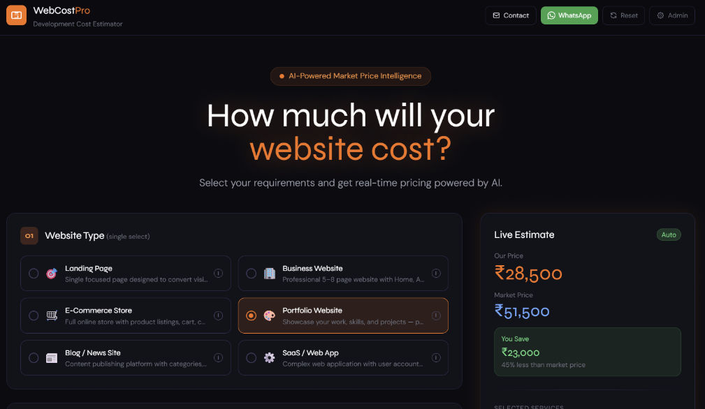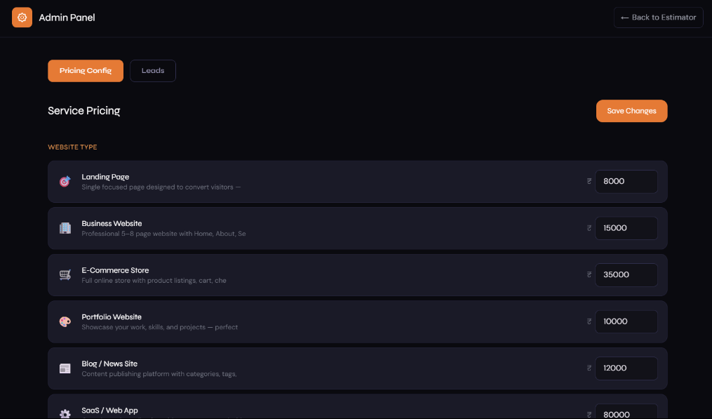 A powerful lead generation tool that instantly calculates website development costs and captures high-quality client leads for agencies and freelancers.